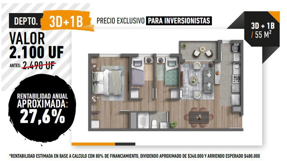 Valor promocional: 2.100 UF (antes 2.400 UF).
